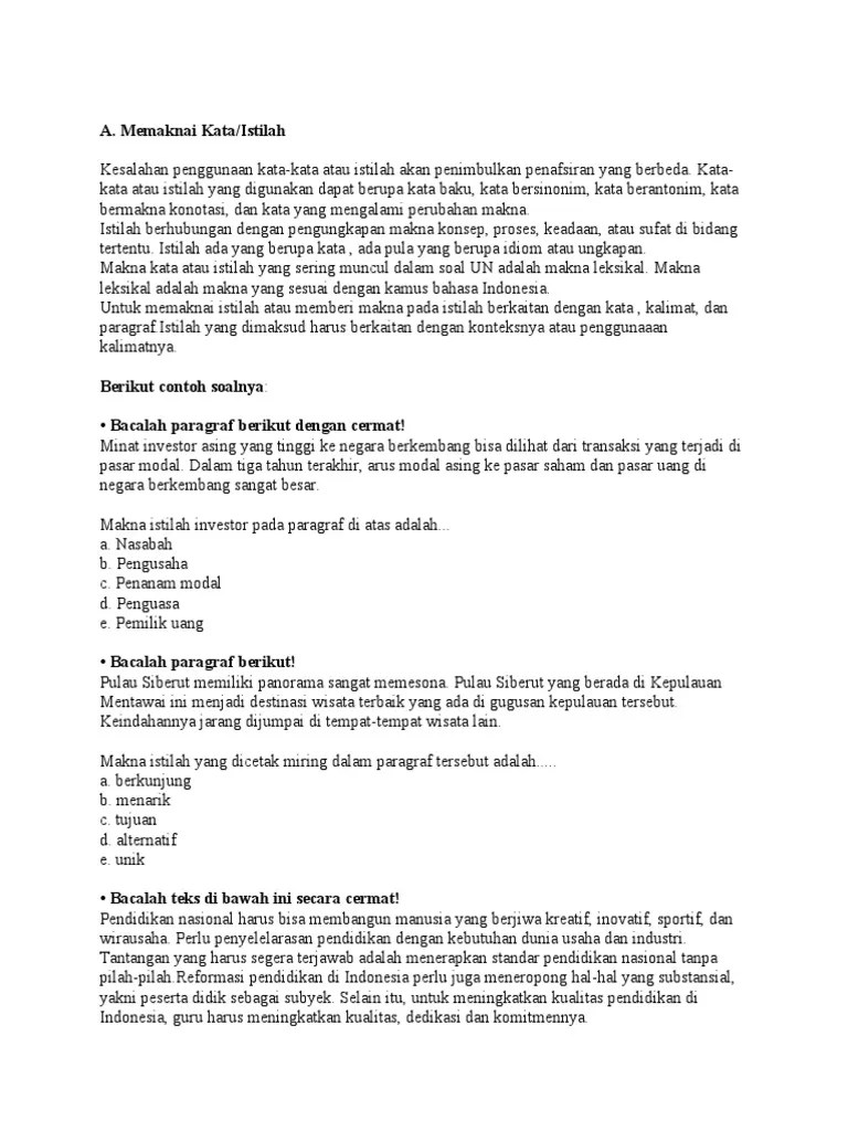 Dan dalam setiap kata tersebut mempunyai makna atau arti. Makna kata bencana dalam paragraf tersebut adalah. Oleh karena itu, dalam membentuk . Arti kata seperti kata onderdil di atas ditampilkan dalam warna yang membuatnya mudah untuk . Temukan kosakata baku dalam paragraf tersebut!