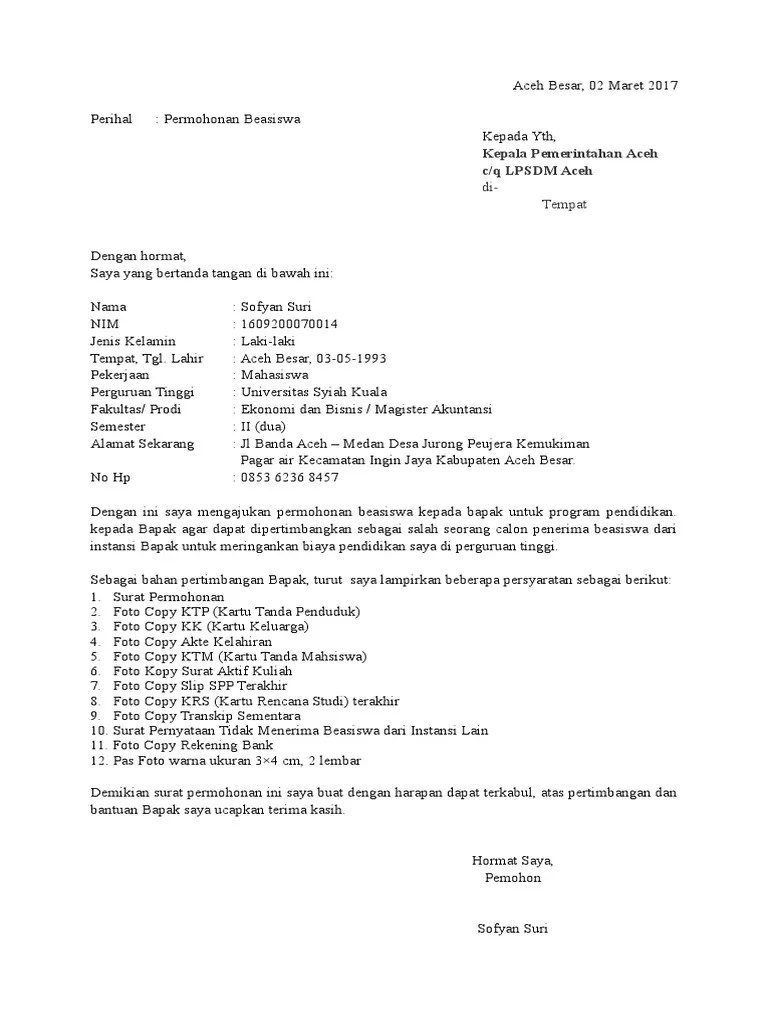 Contoh Surat Permohonan Beasiswa Ke Gubernur - Surat Permohonan Beasiswa Kaltara Cerdas Beinyu Com - Photo copy kartu tanda mahasiswa (ktm).